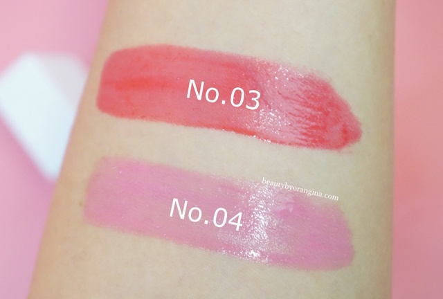 ซึ่งส้มได้มาลองด้วยกัน 2 เฉดสีค่ะ เบอร์ 03 KISS ME จะออกสีแดงมะเขือเทศนิดๆ และเบอร์ 04 LOVE ME จะออกโทนสีชมพูหวานๆ