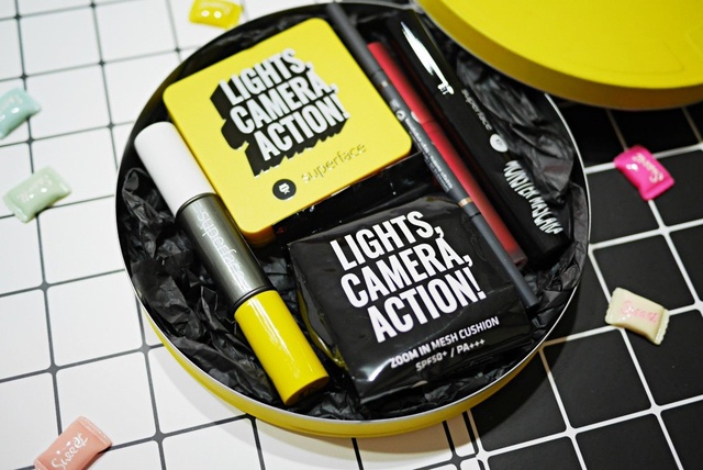 SuperFace的專業組合中內容包含有:Zoom In Mesh Cushion 密網氣墊SuperFine Dou Brow Liner 雙色眉筆Monster Mascara 睫毛膏Soft Blur Lip Mousse 慕絲唇釉Pro FX Contour Stick 修容棒